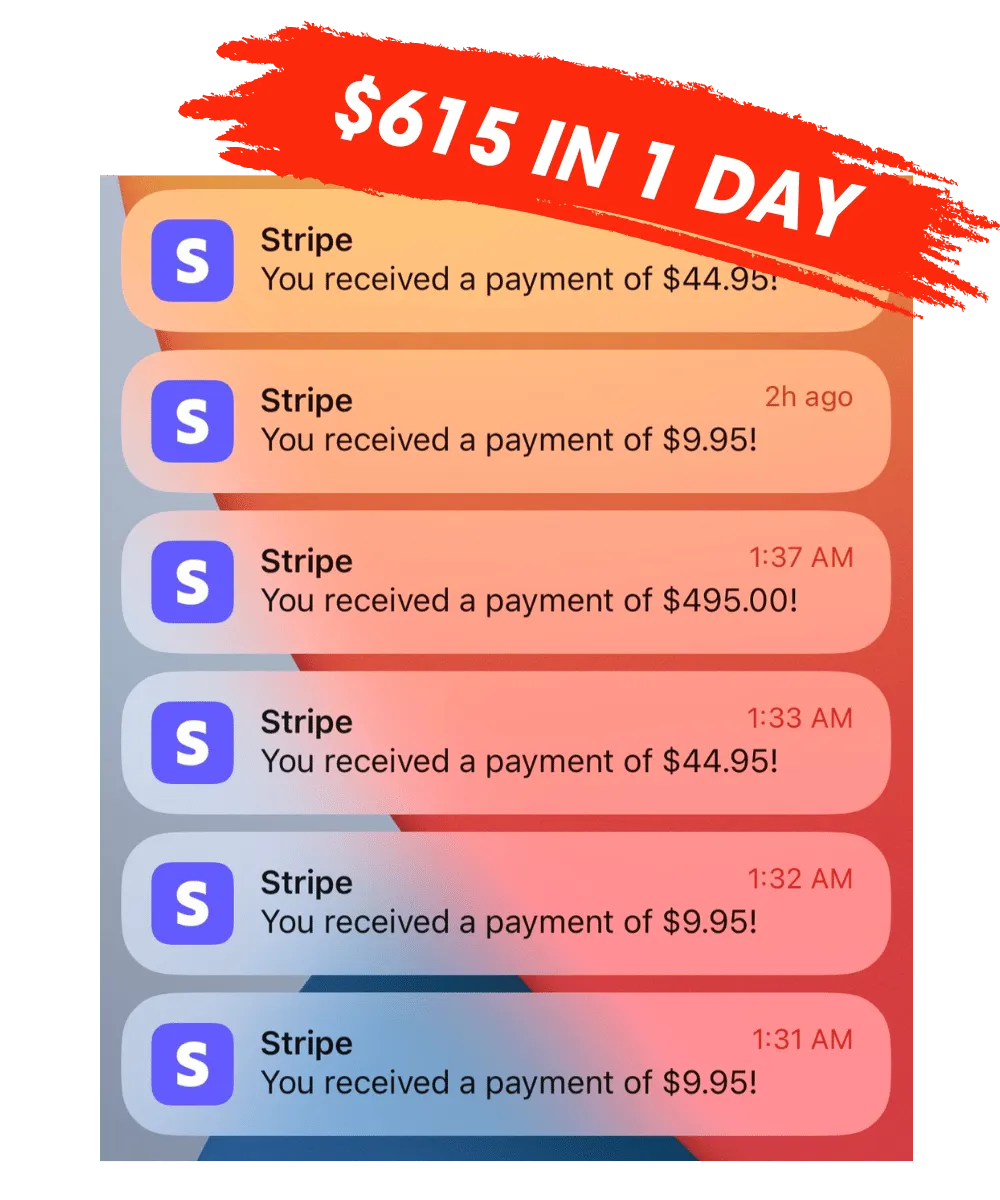 It's simple: You will get everything we talked about… How I setup & sell digital products... How I make my phone go “Ca-Ching” every couple of minutes… How you can copy & paste my entire business for yourself... If you complete the challenge and it STILL doesn't work for you… Just message us and we'll help you 1on1 per chat until you make your first 1 sale guaranteed. This sale will average about $55-$100. You have nothing to loose!